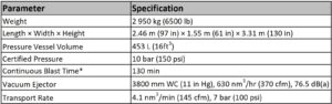 The B-VAC™ Pro 4 integrates Sponge Jet’s Feed Unit™, closed top Recycler™, and highvolume vacuum ejector on a single, forklift ready frame. Delivering ≈ 2 hours of continuous blasting within a compact 246 cm × 155 cm footprint, it is designed for sites where space, time, and air quality are critical.